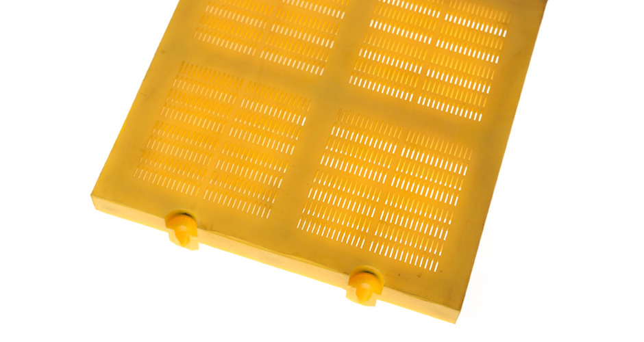 Polyurethane screens can be provided with tabs for tensioning, or in a variety of common modular hooking systems. The polymer that constitutes them exhibits good abrasion resistance, and can be provided with a hardness between 65º e 95º Shore “A”. Modules Polyurethane screens have flat top surface, the assembly is modular and are recommended for screening of medium products.